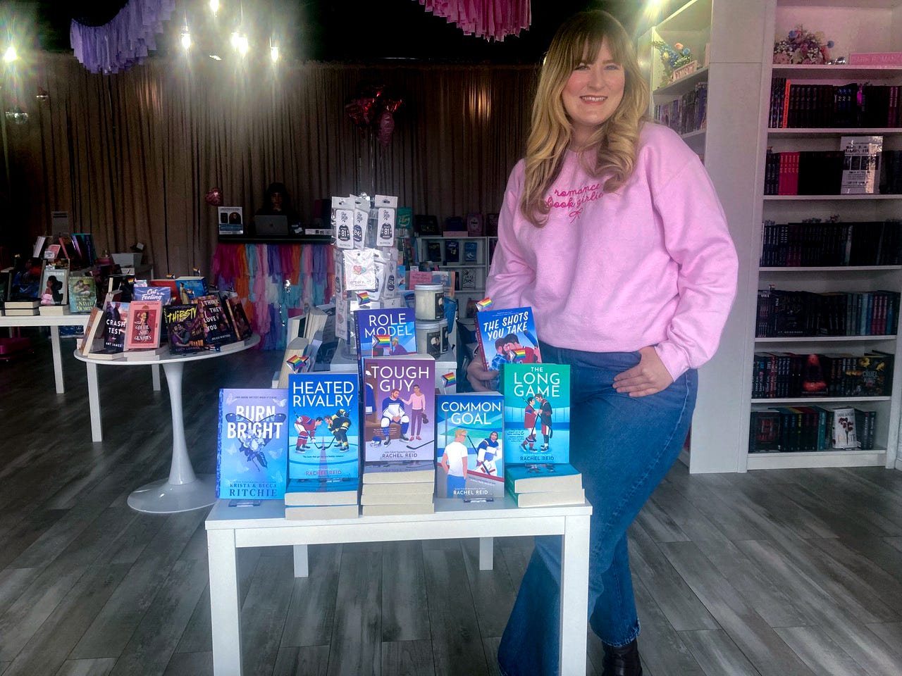 Gardner Bergan’s store is building community for those who love the romance genre in general, and that fits in with those who love sports, too.